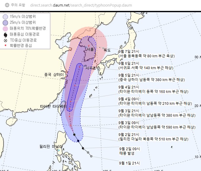 그런데... 이번 주말에 비가온다는 소식만 얼핏들었는데... 알고 보니 태풍이였군요.