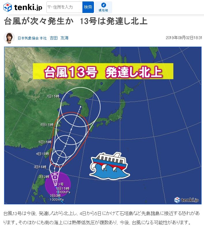 | 5호 태풍 다나스 이동경로 한국,일본,미국 비교 해보니 (기준일 2019.07.18 12:00) (0) | 2019.07.18 |