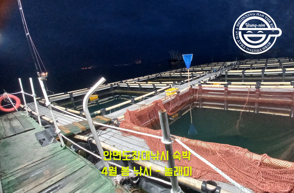 배가 선창으로 와서 2분정도 배를 타고 위 처럼 바다위에 떠있는 좌대에 오르게 됩니다.
