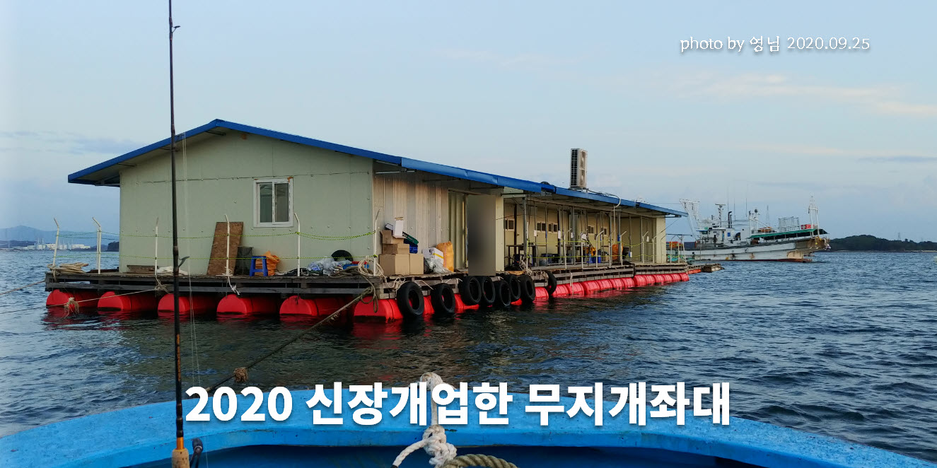 바람과 너울이 없는날 짐을 풀고, 평소 잘 먹지 않는 믹스커피를 한잔 타고, 담배한대 피우면서 #좌대낚시 시작 하였습니다.