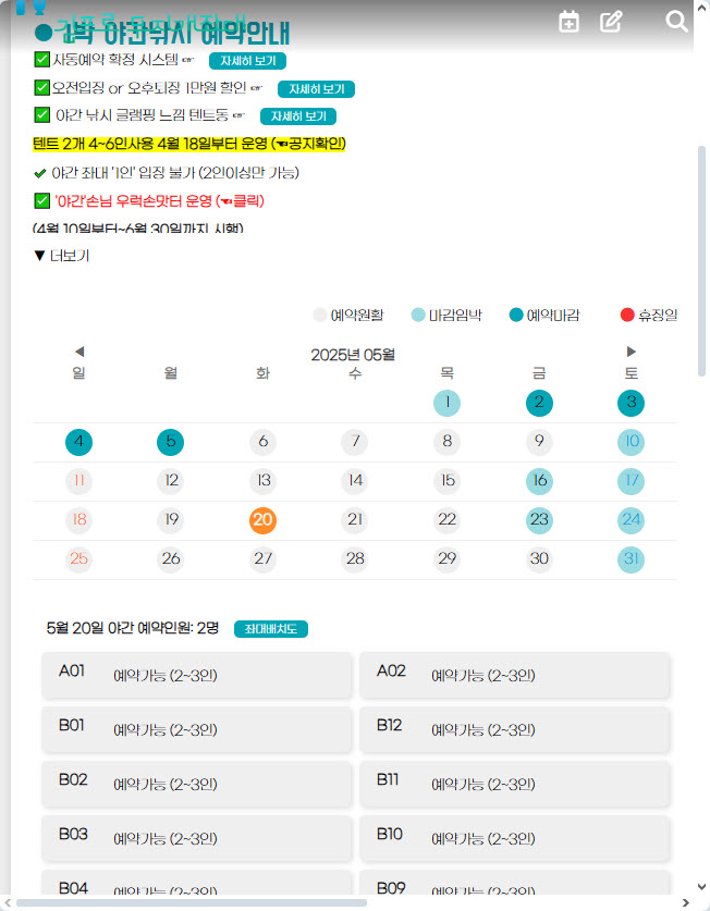 원하시는 날짜, 동행 출조인원에 맞게 방갈로를 여러개 예약 하시면 됩니다.